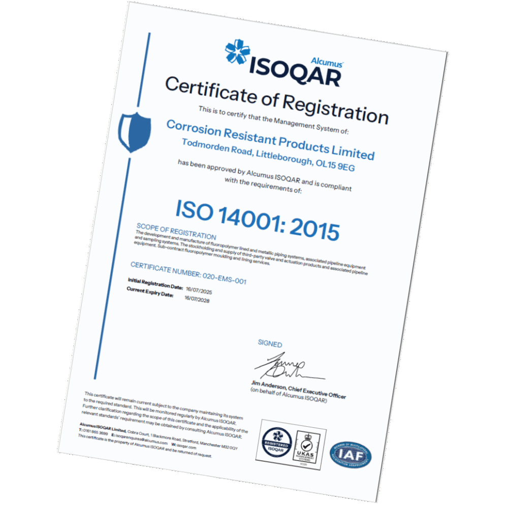 CRP has appointed third party testing to confirm the static-dissipating properties of our lined piping are conforming to relevant standards.